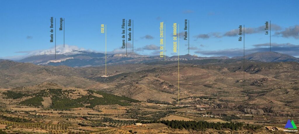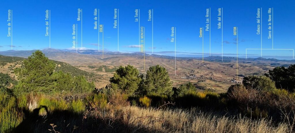Momento en el que aprovechamos para almorzar y disfrutar de las magníficas vistas del entorno. A lo lejos distinguimos las sierras del Tablado y del Moncayo con su manto blanco de invierno, Peñas Herrera, Santuario de la Virgen de la Sierra, Sierras de Nava Alta, Monegré, Morés, Algairén, Vicor,…al sur, el valle de Ribota.