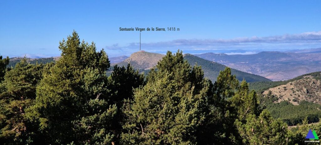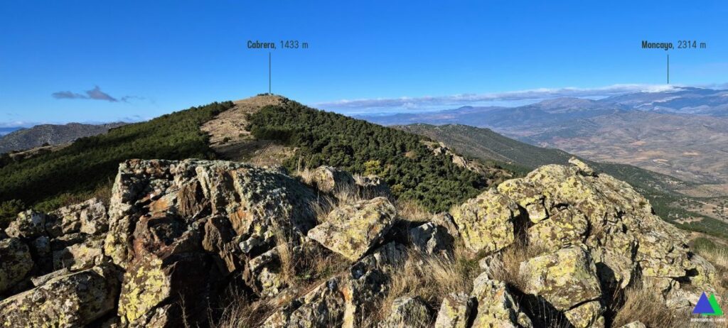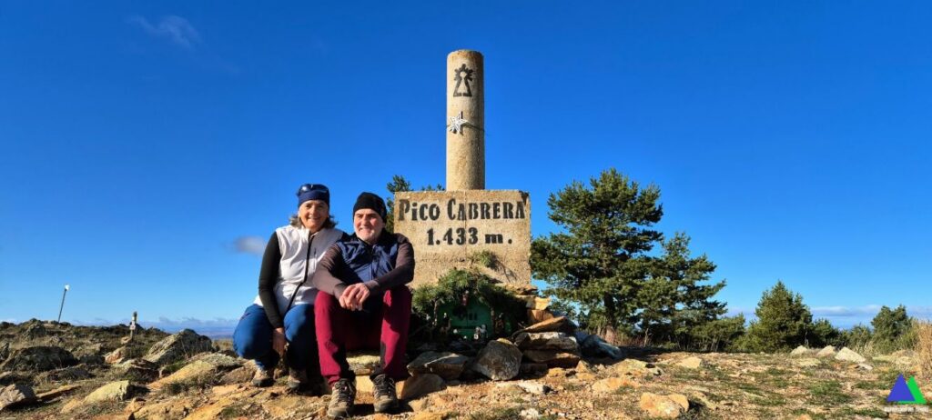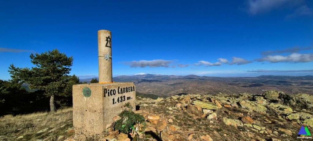 Finalmente, cuando el arbolado desaparece, la senda rodea la cumbre por su lado este y alcanza la cresta cimera donde se encuentra el Pico Cabrera (4,1 km, 1433 m), punto más alto de la sierra de la Virgen señalizado con un vértice geodésico donde está pintado su nombre y altitud y hasta el que asciende el sendero PR-Z-73. En la base del vértice, fieles a la tradición, han colocado como cada año el belén navideño.