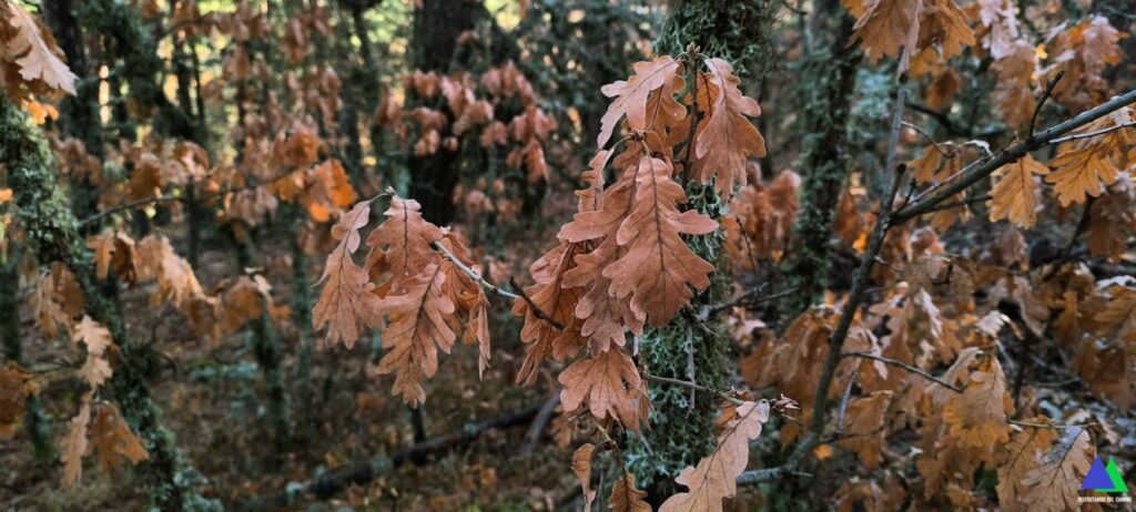 Nosotros seguimos rectos por el Sendero Virgen del Tremedal, en suave ascenso entre pinos silvestres y marojos y suelos tapizados de hojas secas de los robles. Vamos cogiendo altura sobre el valle y a nuestra izquierda van apareciendo, tímidamente, los famosos ríos de piedra. Estos impresionantes fenómenos geológicos periglaciares, de renombre mundial por la espectacularidad de sus dimensiones, se ven mejor desde la carretera que sube al santuario, por lo que merece la pena, una vez completada la excursión, coger el coche y acercarse a ellos.