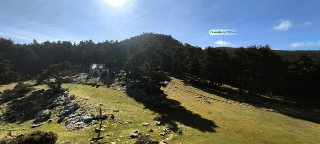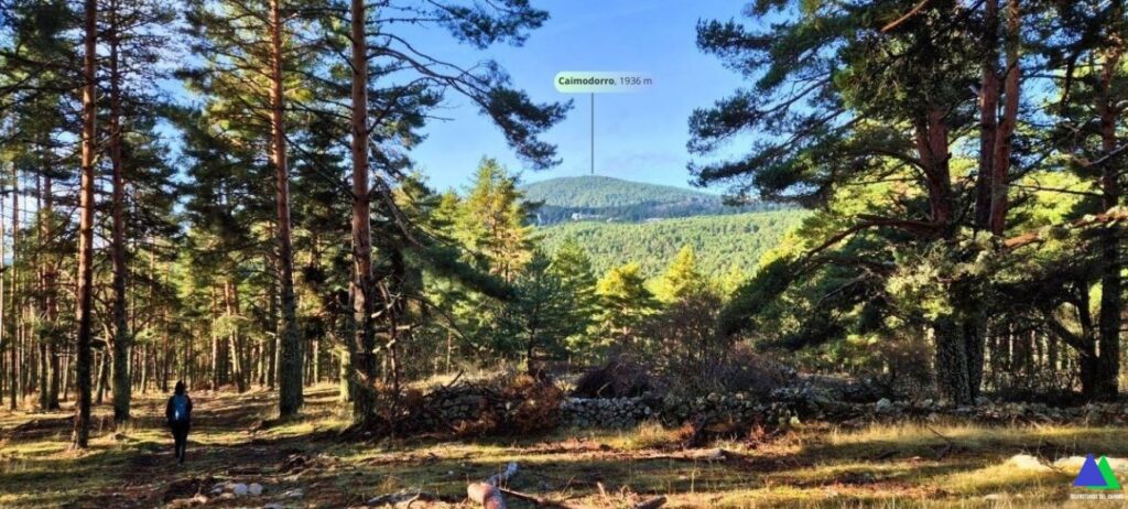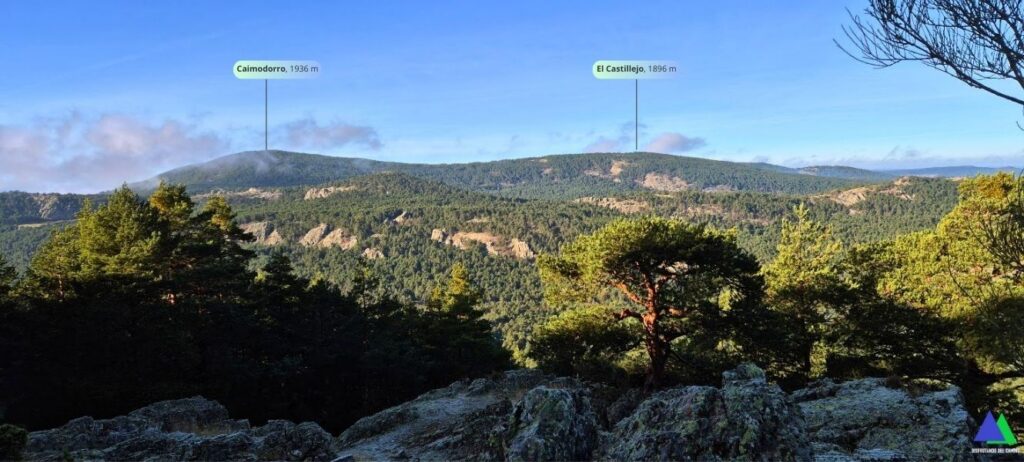 Una vez crucemos la carretera, continuamos por el «sendero La Portera» hasta llegar a una planicie, a los pies de unos roquedos, donde lo abandonamos y seguimos por la izquierda para realizar un gran atajo en el recorrido sin sendero definido (hay que estar atentos al track). Desde el alto de un roquedo bajamos para cruzar la pista forestal Tormo e iniciar la fuerte subida al Caimodorro donde encontramos el vértice geodésico y una torre metálica, que hace de mirador con magníficas vistas de la sierra. Desandamos el camino hasta la pista que nos ha de llevar hacia el mirador de la Portera, desde donde descenderemos hasta la Majada de las Vacas. Allí, tomamos el sendero que enlaza esta majada con la fuente de los Colladillos e iremos en busca del sendero Virgen del Tremedal, que nos llevará hacia el inicio en la Residencia.