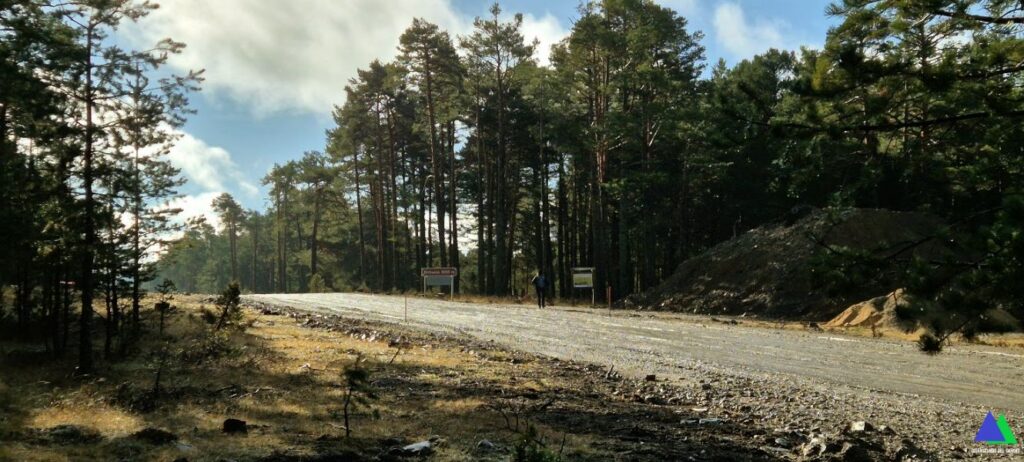 Llegamos a la carretera, actualmente en obras, muy cerca del Puerto de Orihuela (5,6 km, 1670 m), donde un cartel nos indica que nos encontramos en un monte gestionado de manera responsable y sostenible (MUP 27) que cuenta con el Certificado Forestal Sostenible PEFC, asegurando la trazabilidad del producto. Hecho que, viendo el buen estado del bosque nos consta que tiene que existir un plan de gestión y programa de actuaciones.