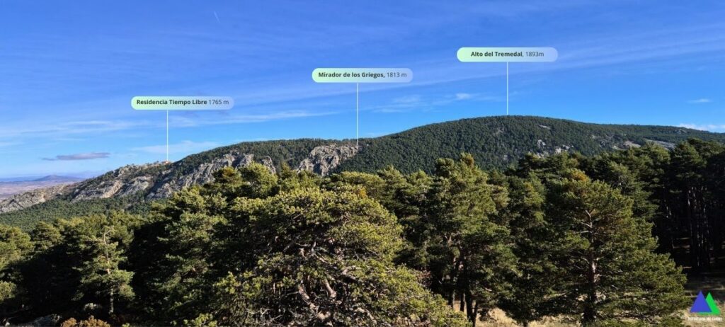A unos 800 metros aproximadamente, llegaremos al mirador de los Griegos (3,8 Km 1813 m), en el que existe un cartel informativo del Macizo del Tremedal y desde el que obtenemos una buena panorámica de la sierra con el Caimodorro destacando en el alto.