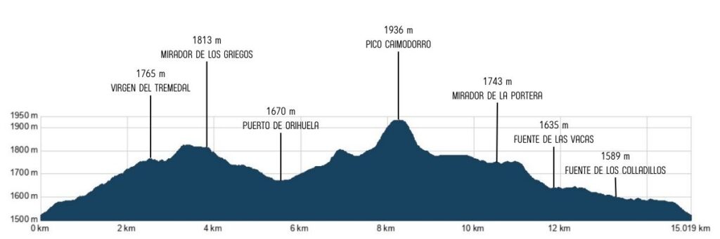 RESIDENCIA IASS TIEMPO LIBRE – SANTUARIO VIRGEN DEL TREMEDAL – MIRADOR DE LOS GRIEGOS – PUERTO DE ORIHUELA – CAIMODORRO – MIRADOR DE LA PORTERA – MAJADA DE LAS VACAS – RESIDENCIA IASS TIEMPO LIBRE