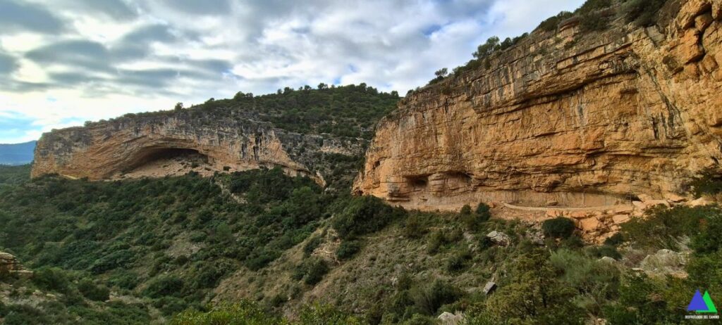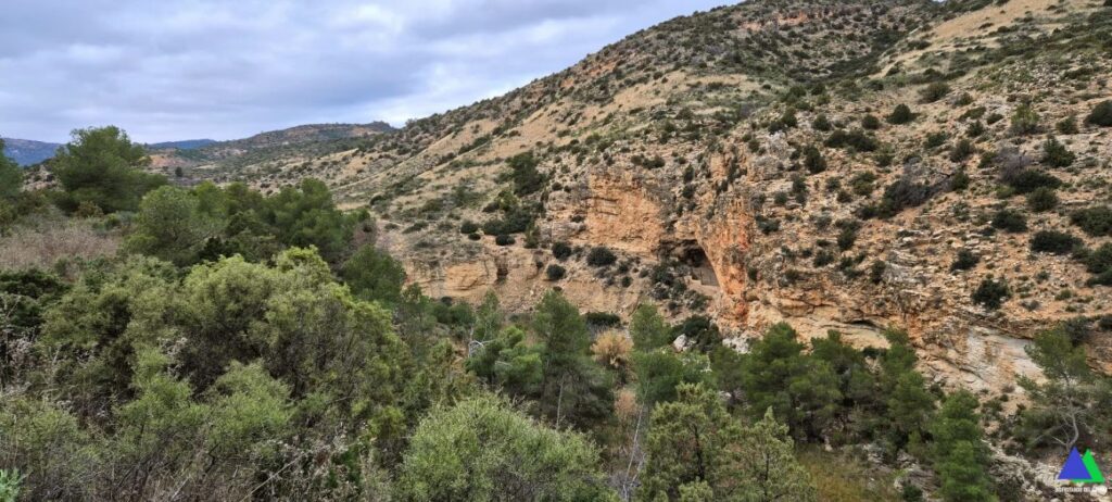 10:19 Hermosa imagen con la cueva a la que no hemos accedido y el abrigo de los Chaparros II
