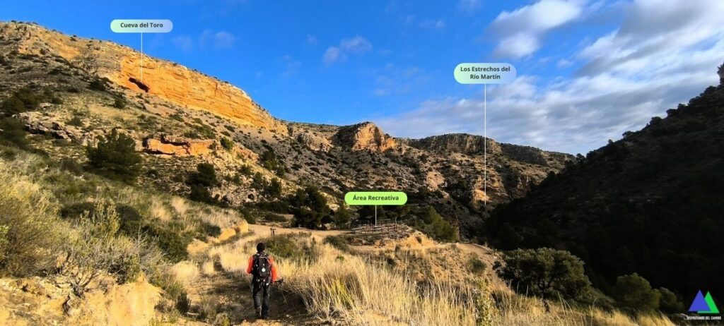 Pues bien, hoy hemos venido a esta última parte, para recorrer, los Estrechos que el río Martín ha labrado entre las localidades turolenses pertenecientes a la comarca de las Cuencas Mineras de Ariño y Albalate del Arzobispo. A lo largo del itinerario disfrutaremos de un espectacular paisaje a la vez que descubriremos importantes yacimientos prehistóricos que constituyen unos de los grandes valores de esta ruta, miradores con mesas de interpretación de este escabroso paisaje, el sorprendente Recodo de los Chaparros o los impresionantes cortados rocosos de los Estrechos I y II.