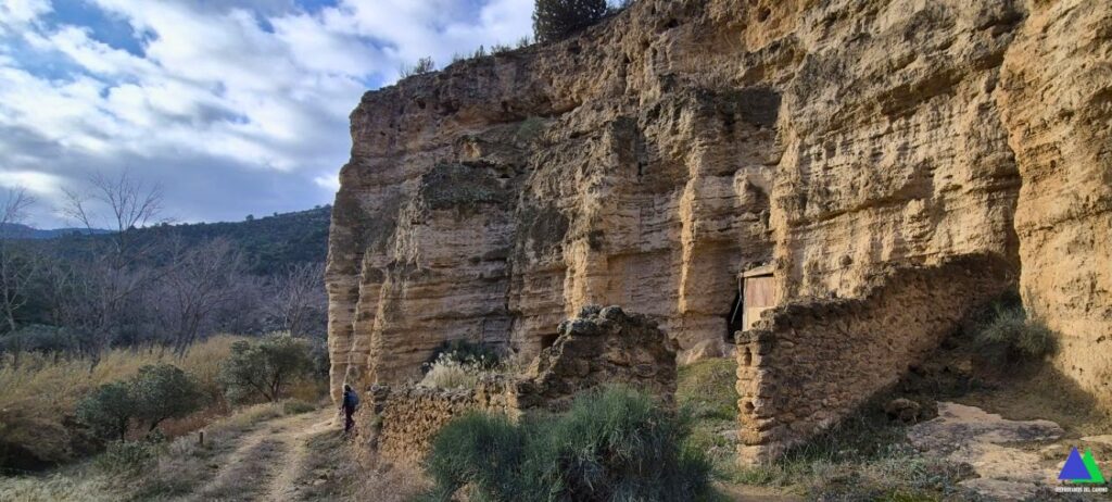 En este punto el GR desciende hacia el río. Al pie de los Chaparros, junto al río Martín, pasamos por un sistema de terrazas travertínicas, donde se abren varios abrigos con cerramientos hechos del mismo material, que en su día fueron utilizados para guardar el ganado y como refugio.