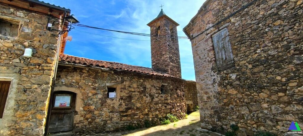 En nuestro recorrido por las calles de Abella, admirando de sus bellos rincones, el GR-15 nos abandona hacia el oeste de camino a San Feliú de Veri. Entre las edificaciones, donde un cartel señala la pertenencia de Abella, junto a Espés y Espés Alto, al Ayto. de Laspaúles, parte un sendero que acorta una amplia curva de la carretera de acceso y que tomamos para llegar hasta ella, donde las vistas del pueblo y del macizo del Turbón son magníficas.