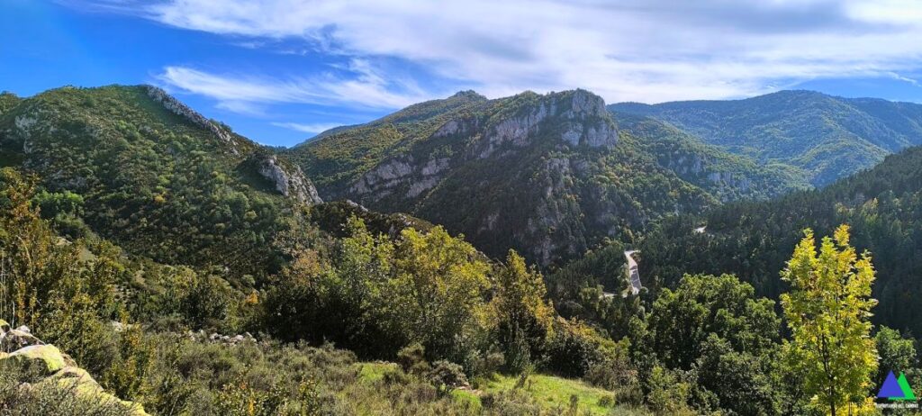 09:18 Al girar a la izquierda en la primera de las curvas, vemos enfrente el contrafuerte del pico Castell de Pegá, 1764 m