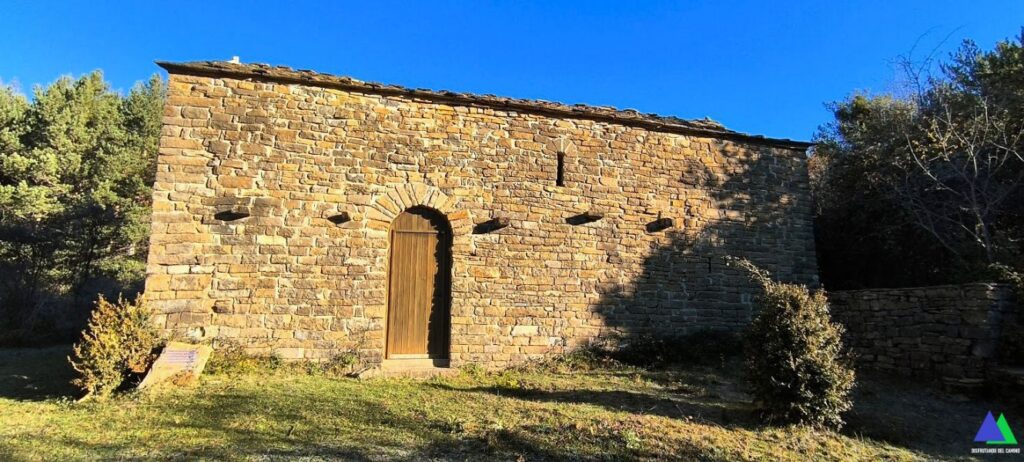 Nos encontramos en el camino una segunda ermita dedicada a San Juan, (2,5 km, 1414 m), de planta rectangular con techo de madera, constituye el modelo primitivo y característico de las iglesias serrablesas perteneciente al primer mozárabe de mediados del siglo X. La cubierta de losa ha sido completamente restaurada en el año 2021.