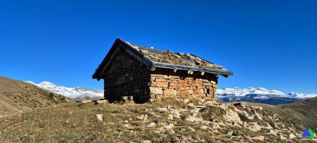 Continuamos en la misma dirección sur por la amplia loma, en cuyo extremo meridional se eleva un pequeño edificio hacia el que nos dirigimos. Mientras caminamos y miramos hacia Otal, observamos los antiguos bancales y que todavía resaltan en las laderas. El pueblecito deshabitado de Otal, se encuentra a 1465 m de altura, siendo el pueblo de mayor altitud de todo el Pirneo Occidental.