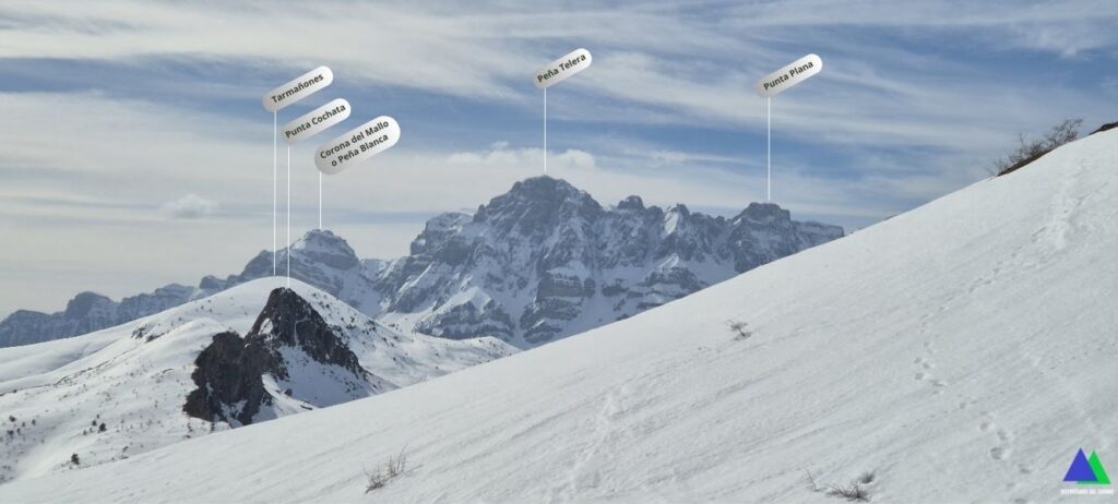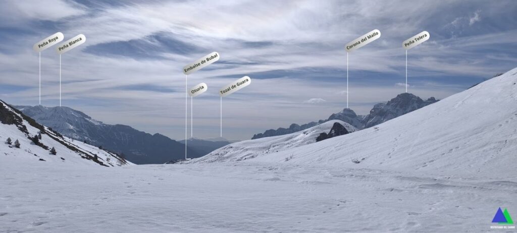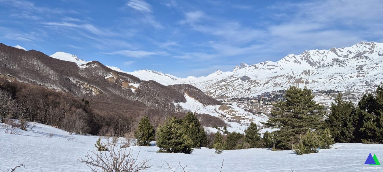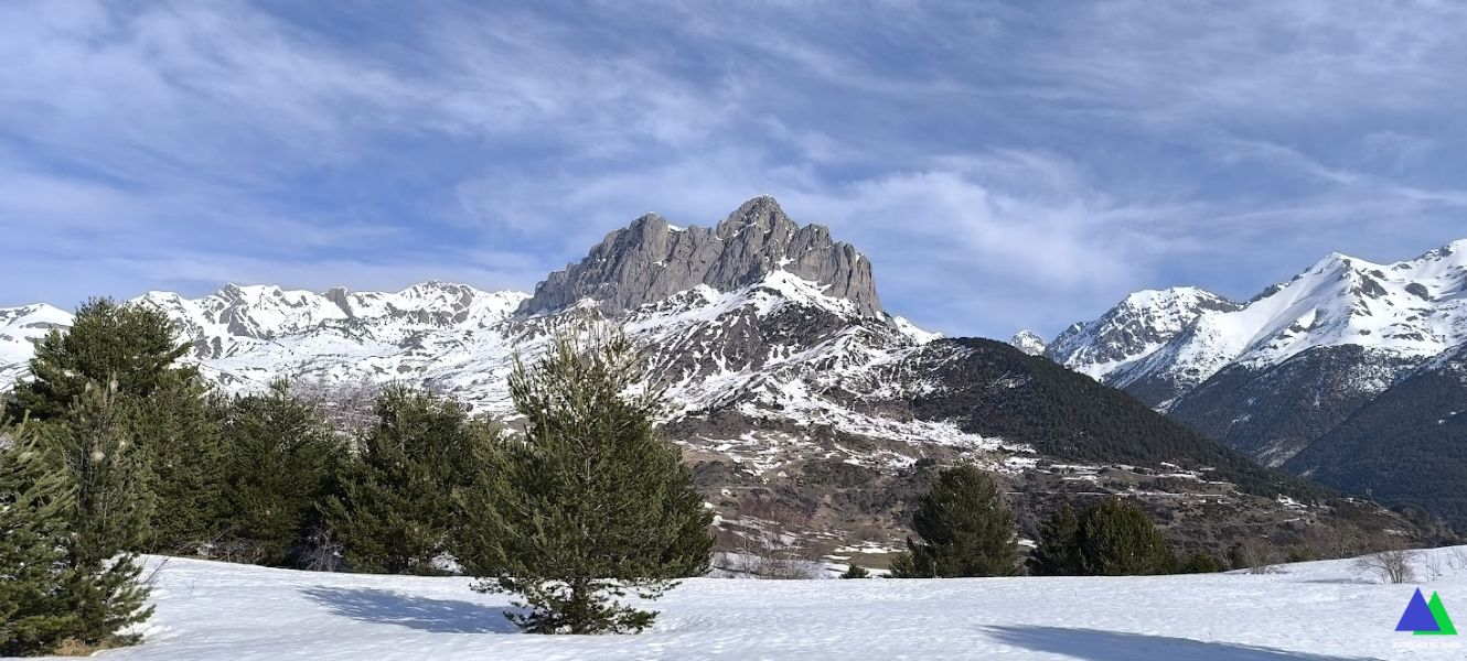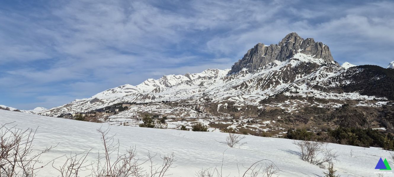 Sin saber las condiciones de la nieve, no nos planteamos un objetivo final. Lo que sí queríamos era disfrutar del espectacular día invernal y contemplar la excelente panorámica del valle de Tena y de sus principales cumbres que nos regala desde su cima, el pico Pacino, situada a 1947 m. Ya las hemos contemplado en otras ocasiones (Circular Tosquera y pico Pacino), pero, hoy queríamos verlas de modo diferente, con ese gran manto blanco que transforma el paisaje (algunas fotos de hoy las comparamos con ese día).
