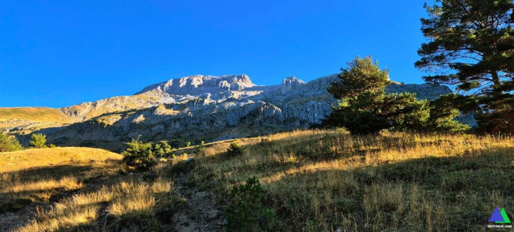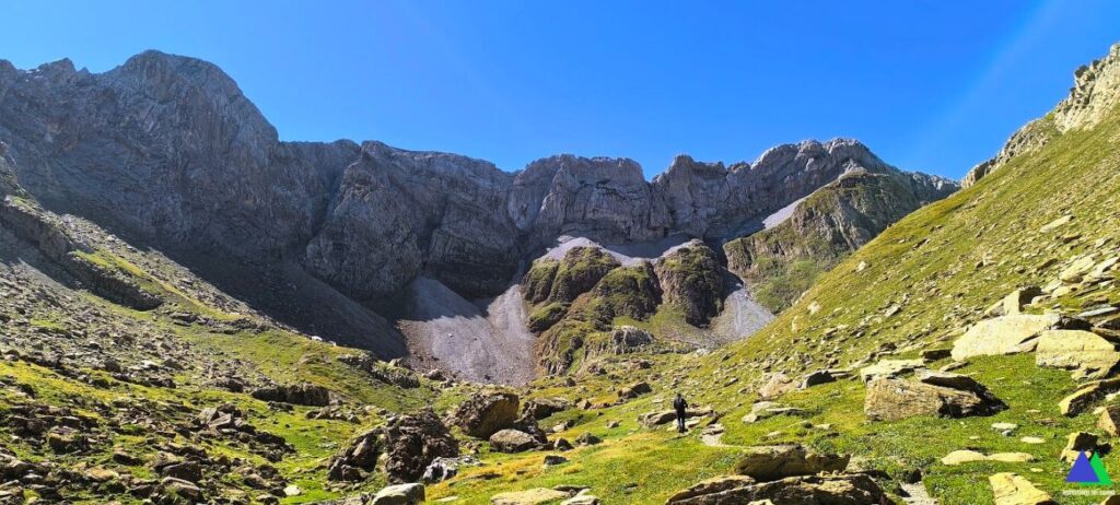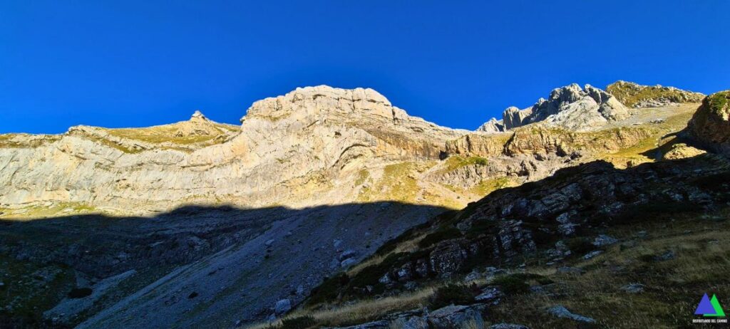 08:47 Por encima del refugio de Ordelca, las paredes verticales de Fetas y macizo de Bernera