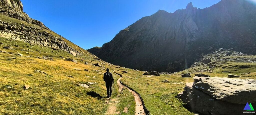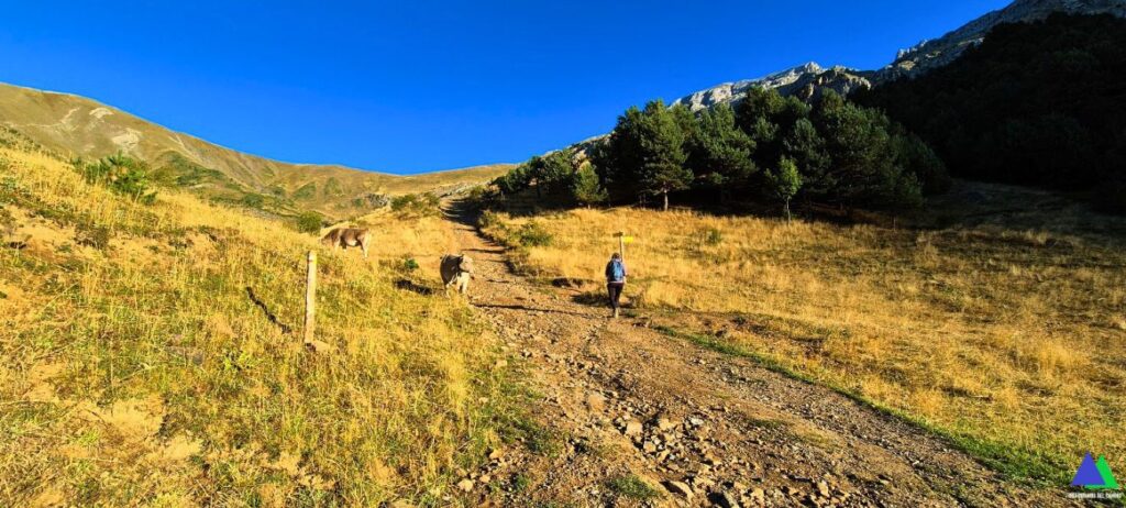 Tras un corto repecho, conectamos con la pista, que toma dirección norte, hacia la derecha en sentido ascendente, compartiendo los primeros metros con la excursión al Bisaurín.