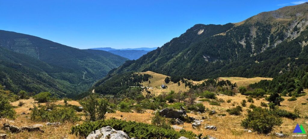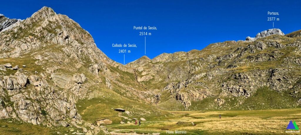 Desde esta edificación, el desnivel se suaviza. La senda que sigue ahora junto al barranco, desemboca en el bucólico paraje de Plana Mistresa (3,8 km, 1984 m), Gran llanura abierta de este a oeste y zona de manantiales por los que recibe también el nombre de la Paúl de Bernera. Es aquí, donde el naciente río Osia, realiza pronunciados meandros en medio de extensas turberas que buscan su salida natural.