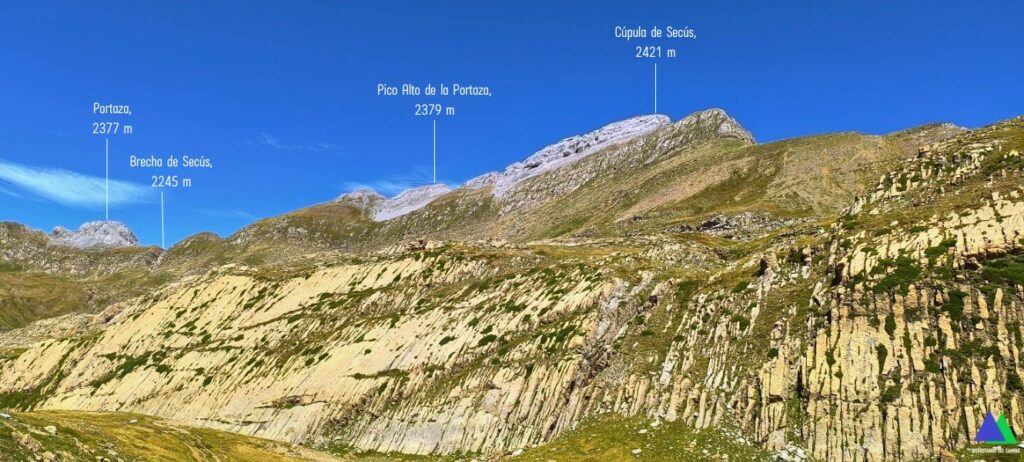10:14 Hacia el oeste, hubiéramos seguido rodeando el Bisaurín, por su cara norte, en dirección al collado y Puntal de Secús